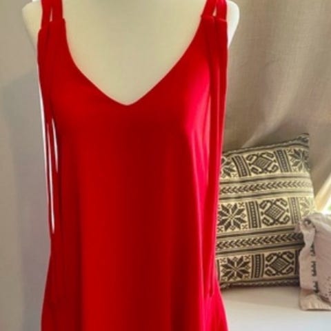 Sommerkjole fra Mango i krøllfritt rød/oransje stoff