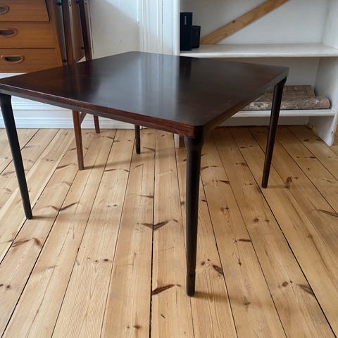 Et lite firkantet palisanderbord.