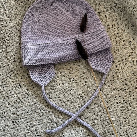 Uværslua strikket i Drops Merino Extra fine, 100% ull. Favorittlua har dobbelt lag over pannen og ørene og varmer godt. God passform.