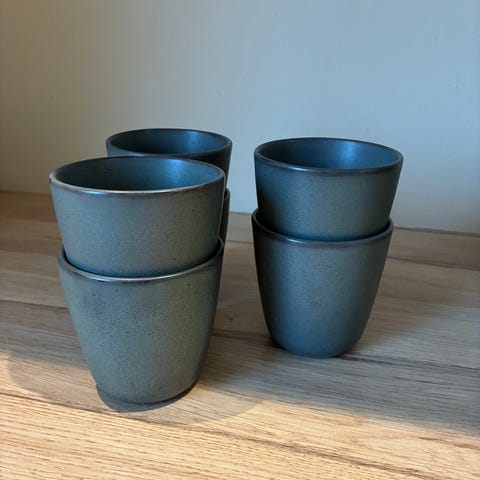 Lite brukte krus fra Aida Raw Titanic Black med hank 35 cl. Selges samlet for 600 kroner. Kan vurderes å selges separat for 100 kroner per krus.