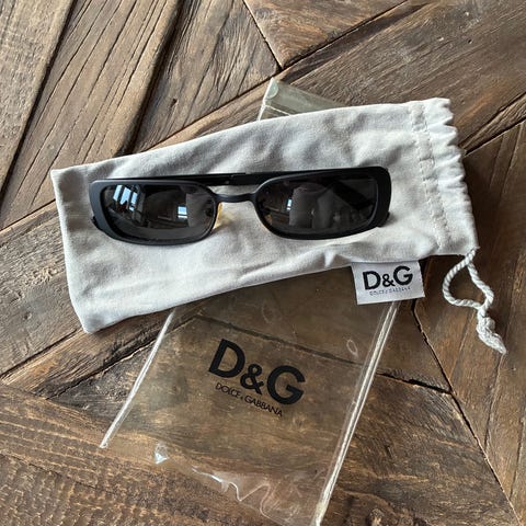 Solbriller fra The Shade i modellen «daddy» і brun og gull. Ny pris 1200.