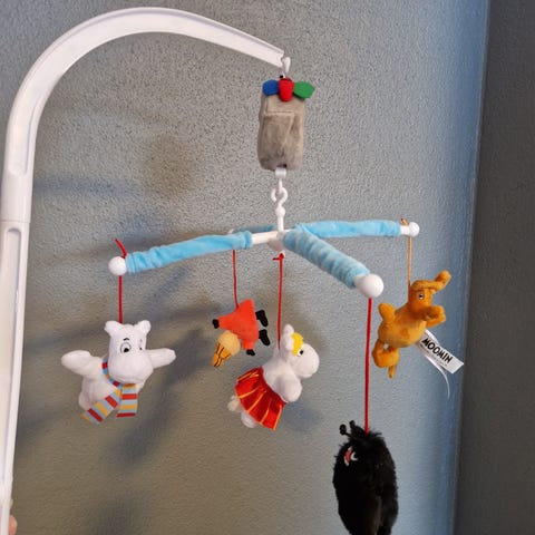 Pent uro brukt kun en gang ,som spiller koselig musikk når man trekker den opp. Enkel å feste til sprinkelseng.