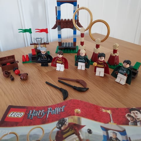 LEGO Harry Potter Quidditch lekesett med tema fra Harry Potter-serien. Inkluderer figurer og tilbehør relatert til Quidditch-spillet. Ideell for fans av Harry Potter og LEGO-bygging. Settet og minifigurene er i utmerket stand og bruksanvisning følger.