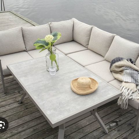 Vi har flyttet og vårt fine bord blir for stort for terrassen. Kjøpt i 2022, ingen synlige tegn til bruk. Veldig fint og stilig bord.