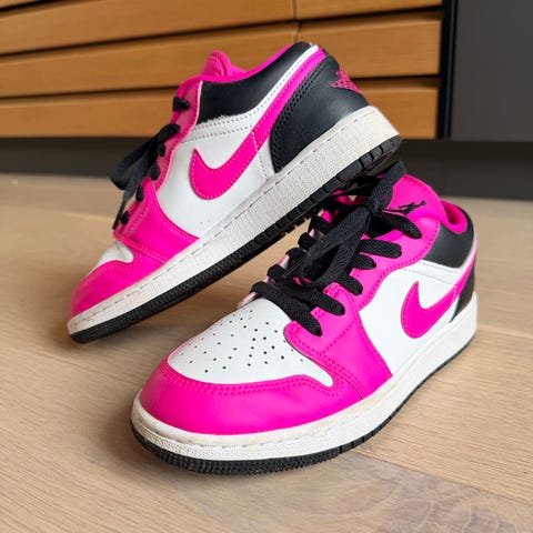 Datteren min selges Air jordan 1 low i hvitt/ rosa