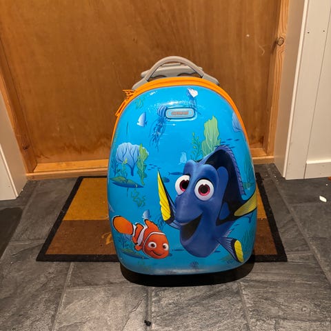 Synlig brukt Disney trillekoffert. "Once upon a time..." Disney prinsesser. Gøy for de minste når man skal på tur. Høyde 40cm, bredde 30cm, dybde 15cm.