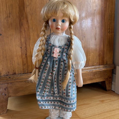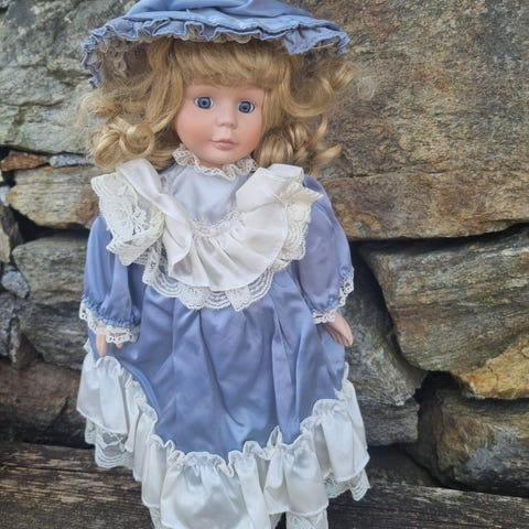 Lastebil i bevegelseFiks ferdig50 krPorselensdukke blå og hvit kjole med hattVallersundLegg til som favoritt.