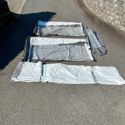 Flamma zip 500 XL markise med sidevegger fra 2021. Det er to små hull i duken inne ved aluminiumsrøret i front. Ellers er alt i god stand - pent brukt. Utstyr som følger med: bag til oppbevaring av sidevegger, ny stormstropp som går over hele markise, diverse plugger og gardiner.
