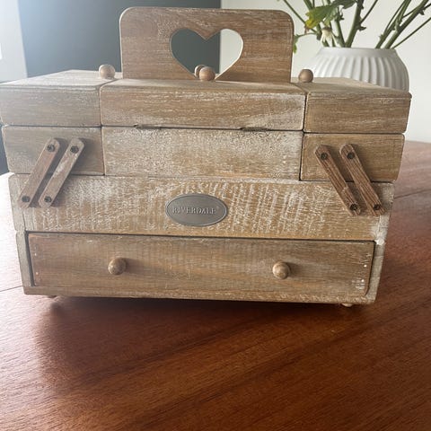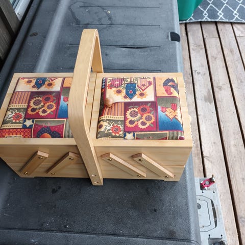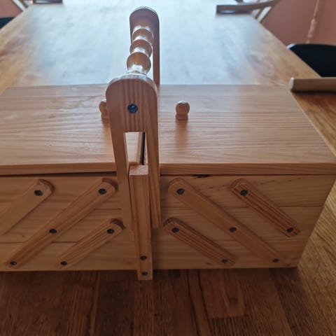 Settet mangler saksen og noen av trådene er det brukt litt av.