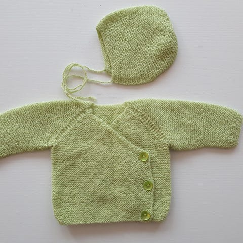 Pent brukt hjemmestrikket babygenser med praktisk knappene. Myk babyull.