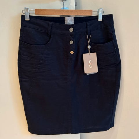 Stilig jeansskjørt med strech (se vaskelapp). Helt og pent. Supert til høsten også med skinnjakke og boots.