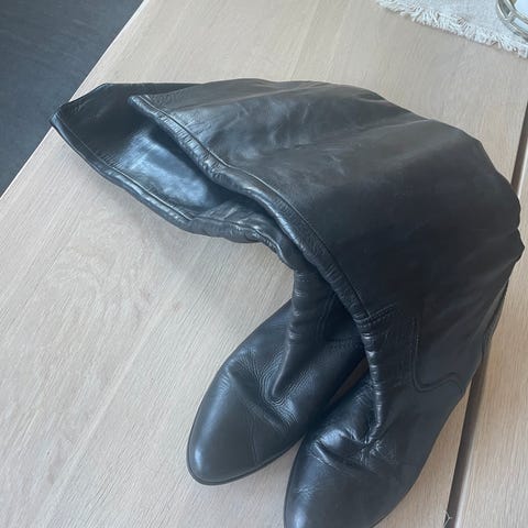 Glidelås på innsiden og strikk øverst på kanten, så passer også litt større legger.