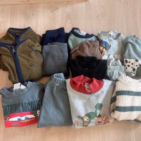 bluser/gensere str 98. Merker: Pomp de Lux, Mayoral (har en liten flekk, men er likevel kjempefin 😅), Hust & Claire, Stormberg, Name It. To av genserne inneholder ull :)