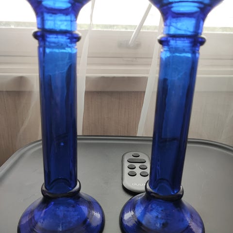 To sølvfargede lysestaker