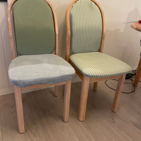 Spisestoler i stålblå velur selges