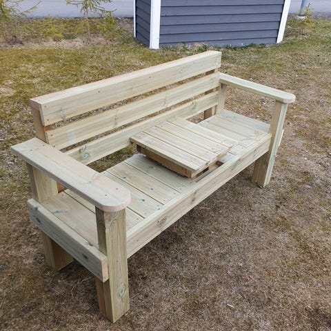 Værbitt, hardfør hagegruppe. To-seter benk, bord og to stoler.