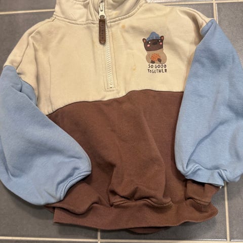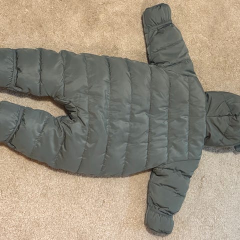 Babyworld heldress/uteress i størrelse 80 for gutt. Lyseblå, myk og behagelig. Lite kattemotiv på. Pent brukt, litt svak misfarging (ikke sjenerende) på armene når de brettes opp (stoffet kan trekkes ned slik at fingrene blir pakket inn på kalde dager). Hentes eller sendes mot frakt.