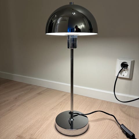 En meg flott design bordlampe i stål. Svingbar og justerbar i høyde. Lyset kan dimmes.