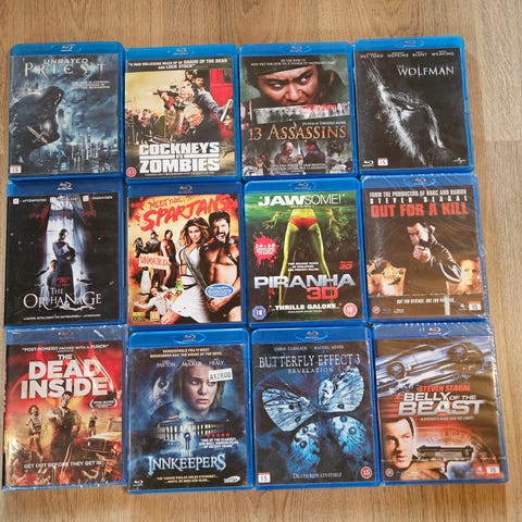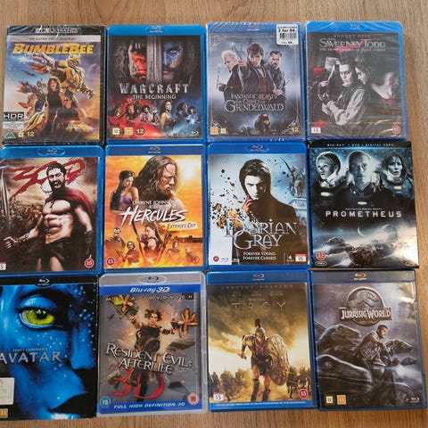 Selger en pakke med 7 Blu-ray-filmer, alle helt nye og plastforseglede.