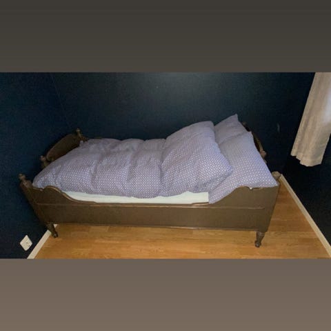 Gammel, håndlaget skuvseng. Solid og i veldig god stand.