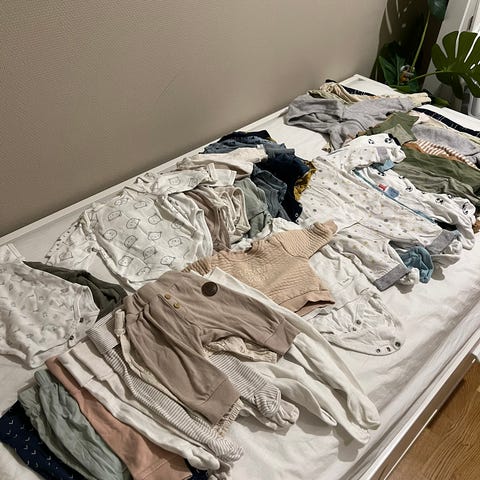 Klespakke str. 50/56/62 selges. Klærne er pent brukt. Klærne er fra merker som Wheat, Lindex, Newbie, Polarn O.Pyret, Hjorth og Condor. Legger med flere klær hvis jeg finner. Obs: Koseklut er solgt og følger ikke med.
