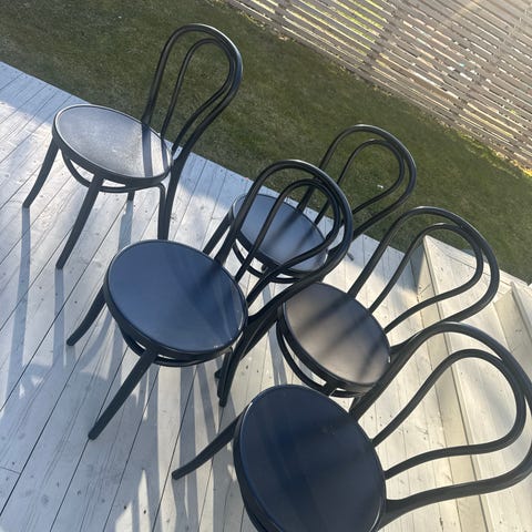 Stolene er pent brukt og fremstår i god stand. Stått ute på veranda med tak.