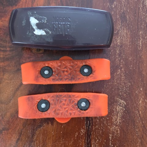 Kule, enkle brodder til å tre over forfoten selges. Helt nye i esken.