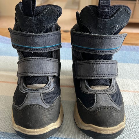 Vintersko av ECCO på størrelse 28 selges billig. Skoene er veldig pent brukt og i svært god tilstand som passer veldig godt for barnet i barnehagen eller andre daglige sammenhenger på kalde vinter dager. Skoene er vanntett GORE-TEX-utførelse med varmt fôr sørger for tørre føtter under vinterlige forhold.