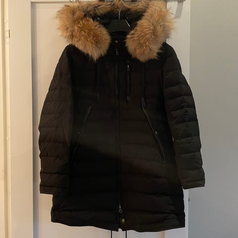 Dette er en svart stilig dunparkas fra merke Cedrico coyan jakke i Størrelse: M