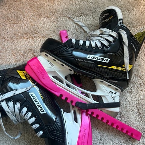 Bauer Supreme M5 Pro Str.: FIT3 8.5 / 44. I god stand brukt litt under en sesong. Ikke mye synlig slitasje. Bakt inn en gang. Masse stål igjen.