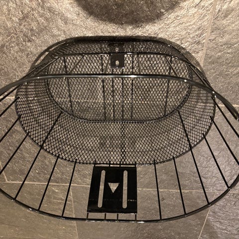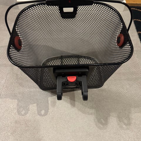 Super sykkelkurv i bronsefarge med tilhørende nett, kjøpt fra Sykkelpikene.