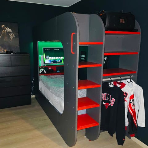 Senga: https://drommerom.no/products/gamer-ultimate-loftseng-120x200?variant=48155668152605
