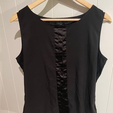 Veldig søt svart topp/vest med knapper foran, blondekant i hals, ermer og nederst. Belte bak. 70 % bomull og 30 % lin. Ubrukt og selges grunnet feil størrelse. Str L.