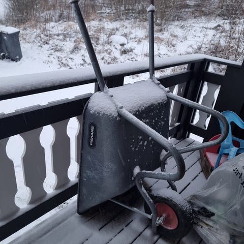Sollid trillebår fra Fiskars selges.