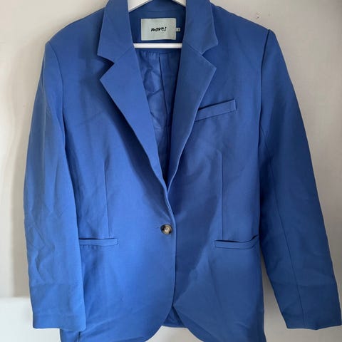 Super fin blazer med åpen rygg i nydelig blåfarge, str. 42 💙