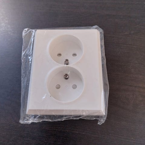 Brukte kontakter med litt maling på selge kontakten. Kan vaskes vekk med sprit. Deksel ok..