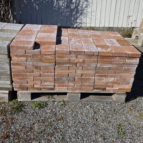 Belegningsstein mix grå-sandfarget, ca. 200stk/5,6m2 vist på bilde. (Ved behov kan det kjøpes 15m2 mot prisjustering).