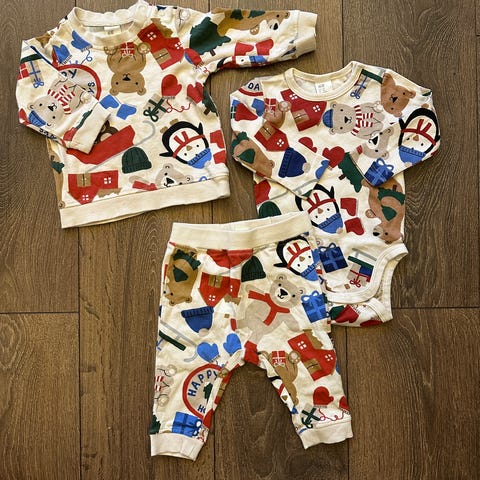 En liten pakke med juleklær til baby, str 68.