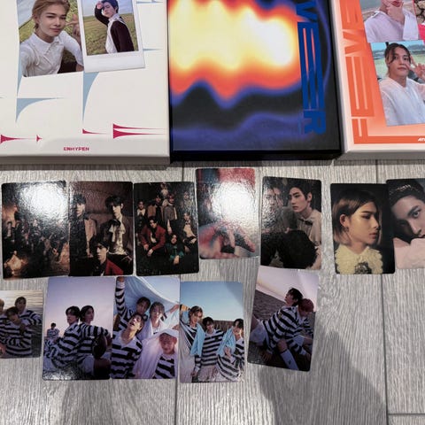 Jeg selger samlingen min med K-pop albums fordi jeg har mistet interessen. Alle albums er komplette med photobook, CD, stickers og photocards – ingenting mangler, og stickers er helt ubrukt.