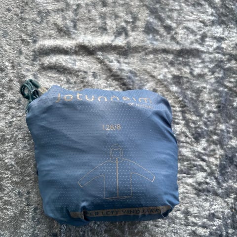 Superlett regnjakke/vindjakke selges da den er blitt for liten. Kan pakkes sammen slik at den er enkel å ta med seg på tur. Veier svært lite. Kjøpt på den internasjonale utstyrskjeden Decathlon. Dette er deres eget merke som jeg har veldig god erfaring med.