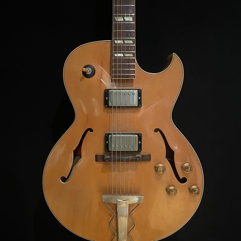 Flott Florentine cutaway og elegant laminert kropp (maple/poplar/maple) med balsa-sustain-blokk – lite feedback, mer sustain.