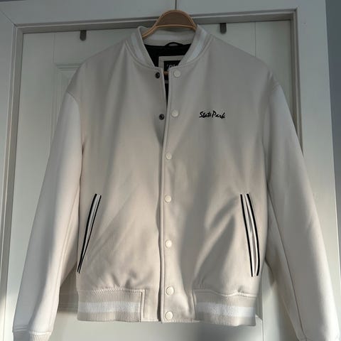 Meget pent brukt jakke. Fin utover høsten. Blå jakke med hvite ermer.