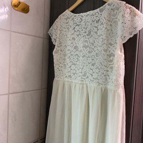Selger todelt kjole fra Tutto bene som er kjøpt i brudesalong. Den er perfekt til bryllup! Fargen er limegrønn. På sjalet er det noen flekker, så det kan trenge en rens.