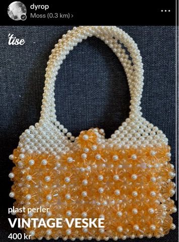 Små, dekorative smykkevesker. Dekorert med paljetter og krystaller, med kjede. Prisene er oppført under bildet.