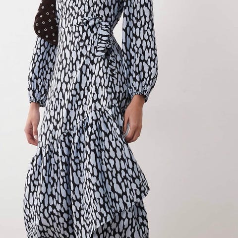 Helt ny kjole fra Isay. Lange armer med strikk nederst. Kan brukes hele året. Off-white med sort mønster. Kun vasket, ikke brukt den. Er litt stor i størrelsen, vil si den er en romslig str M. (40/42)