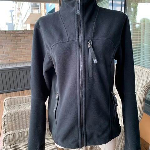 Pent brukt fleecejakke i tykt materiale til dame i str M. Lite slitasje på ermer.