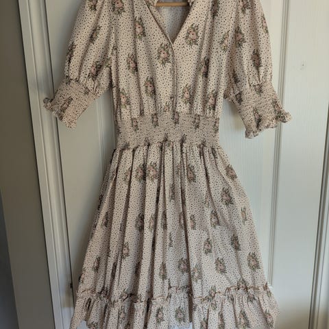 Hvit kjole med gulldetaljer kjøpt i 2024 i Italia selges! Selges fordi jeg har en som er ganske lik. Denne har god stretch i livet, så jeg mener at den passer xs til medium. Den er ekstra fin med belte! Kjolen er laget i 100 % bomull, kun brukt en gang. Så god som ny!