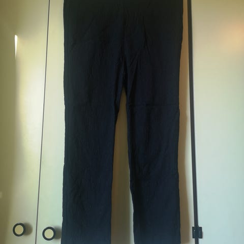 Et lite ubetydelig hull helt øverst, som lett kan fikses med nål og tråd. Litt slitasjemerker nederst på innsiden av leggene. Se bilder.