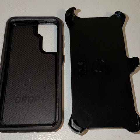 Solid deksel til mobiltelefon. En er brukt, den andre er mer eller mindre ubrukt.