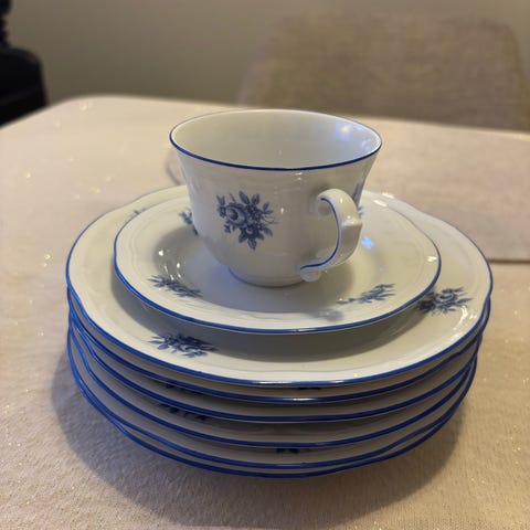 Porselen ubrukt og som nytt. Fra Imari fine ceramics, noen med prislappen på. Alt med bilder av ulike typer iriser med tilhørende navn.